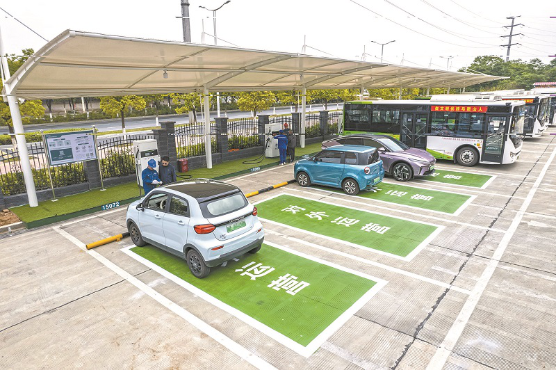 国网安徽马鞍山供电公司建设运营的磁山路公交充电站为新能源汽车车主提供服务,满足充电需求。