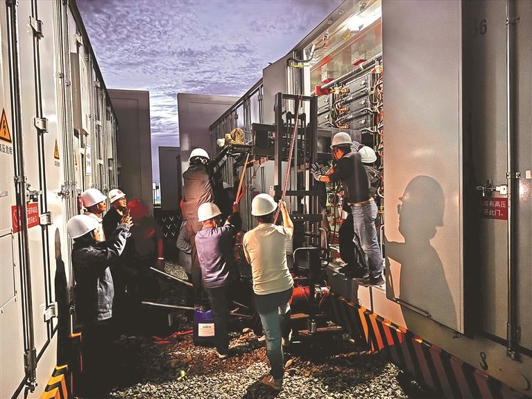 海南州储能电站的35千伏开关站综合预制舱。(中国华能集团供图)