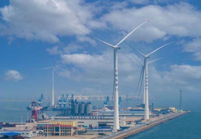 9月30日,潍坊港4台6.7兆瓦风机并网成功,成为山东省首个并网发电的陆上分散式风电项目,年可用发电量超7000万度,可满足整个港区用电量,冗余电量还可通过电网供社会使用。为潍坊港每年节省用电成本约960万元,与相同发电量常规燃煤火电机组相比,节省标煤2.1万吨,减少二氧化碳排放5.7万吨,减少排放烟尘1.5吨,减少其他废气二氧化硫7.0吨、氮氧化合物10.5吨。