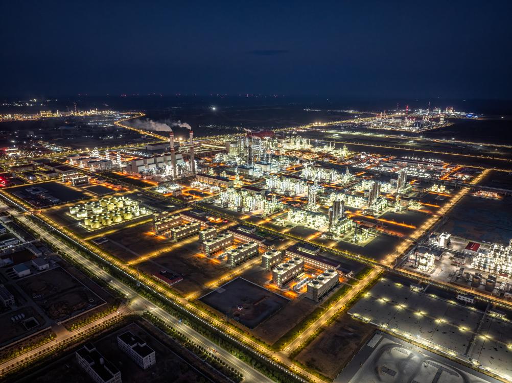 航拍榆林化学厂区夜景。(受访者供图)