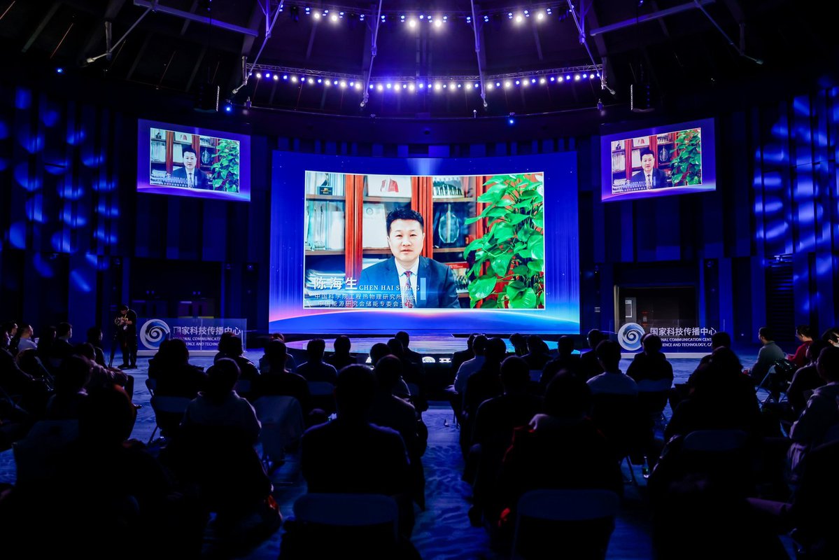 发布会上,中国科学院工程热物理研究所、中国科学院大连化学物理研究所、中国科学院物理研究所分别发布了“百兆瓦级先进压缩空气储能技术”、“新一代全钒液流电池储能技术”和“百兆瓦时级钠离子电池储能技术”三项科技成就及最新进展。
