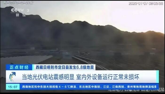 据了解,地震发生时,由西北院EPC总承包的国家电投西藏定结县50兆瓦光伏储能项目距离震中约30公里,震感明显;国家电投西藏桑珠孜区90兆瓦光伏治沙项目刚刚全容量并网,项目距离震源246公里,两个项目部均在第一时间组织技术人员现场采取应急措施,全面检查设备,排查故障风险,确保电力供应的正常稳定。目前,两个电站均未发现异常情况。
