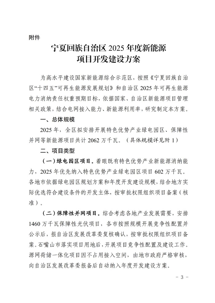 附件:宁夏回族自治区2025年度新能源项目开发建设方案