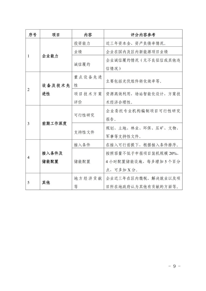 (五)储能配置。按照容量不低于申报项目装机规模20%、4小时配置储能设施,每多增加5个百分点,可多加X分。