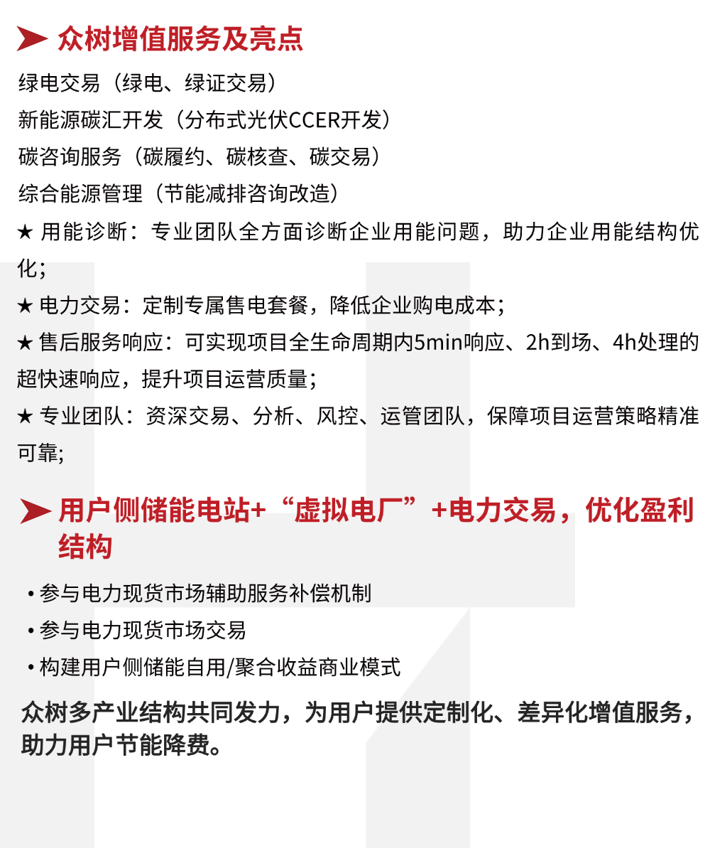 众树能源助力客户实现“有序用电、削峰填谷”,以响应国家的“双碳”政策。在降低用户能源成本的同时,还能获得良好的经济效益,有效提升企业的绿电消纳及存储能力、优化用能结构,在江苏地区的用电高峰期为企业提供稳定的电力供应支持。同时,这种运行模式可优化企业用电结构,主动错峰用电,改善电网尖峰供应压力,彰显企业社会担当。众树能源充分发挥自身优势,提供一站式储能解决方案,为企业的能源结构调整、降本增效和可持续发展提供有力持。