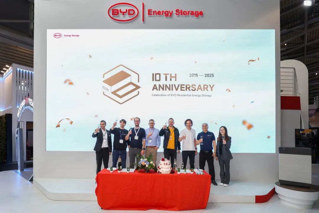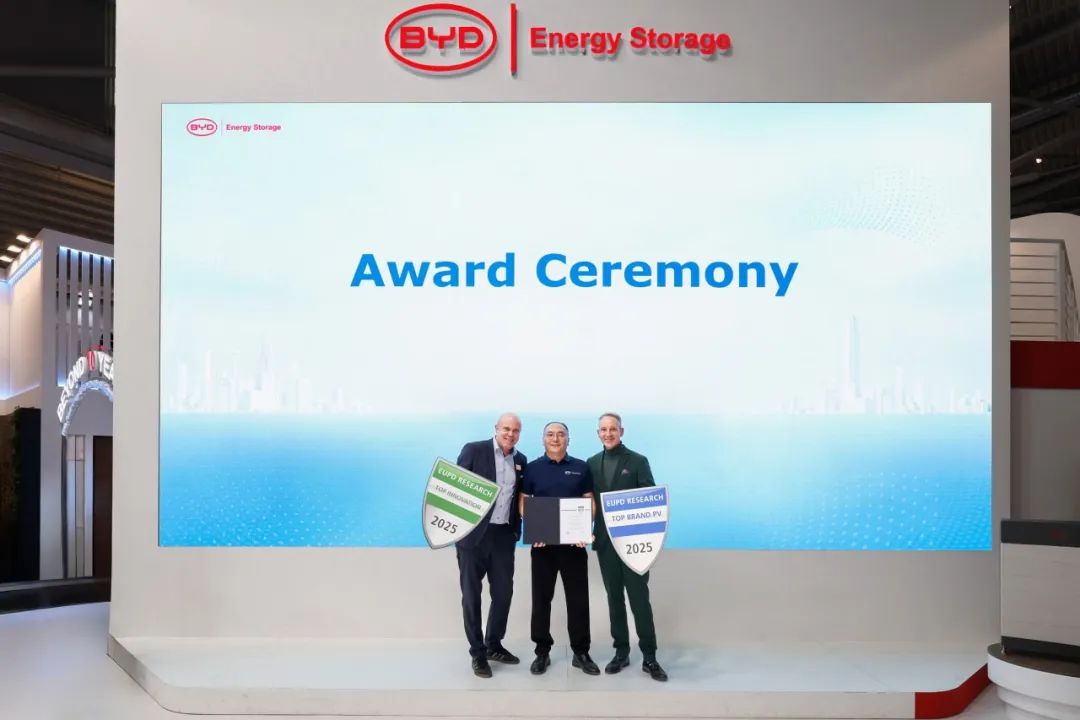 展会期间,比亚迪储能举办户储十周年庆典,进行隆重的颁奖仪式,对过往辉煌致敬,向未来再创辉煌宣言。十载耕耘,硕果累累。比亚迪储能户储从第一代户用储能产品面世到第四代全系统户用储能解决方案发布,十年间不断突破创新,申获盲插专利、实现百万安装量、连续八年在HTW测试中名列前茅、蝉联EUPD欧洲顶级储能品牌等诸多成就,彰显了比亚迪储能户储对卓越与可持续发展的不懈追求。凭借此次发布的Battery-Box HVB,比亚迪储能同时斩获2025年EUPD最佳创新奖,再次巩固了全球储能领域的领先地位。