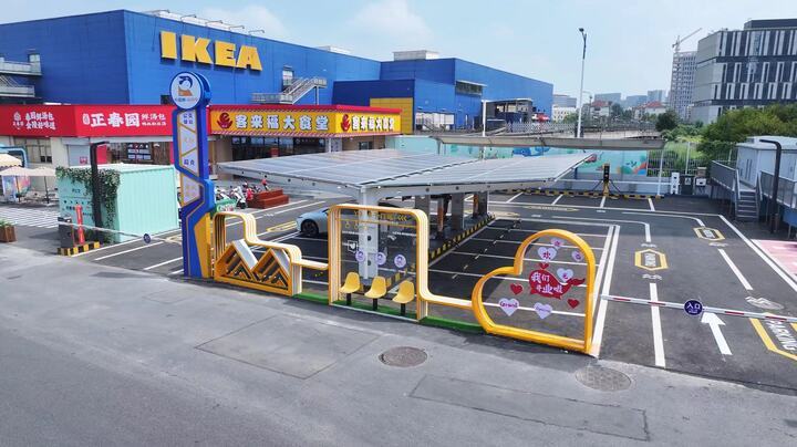 场站内还设置女性友好车位。该车位相较于传统车位更方便车辆停泊,且在设计风格上更具特色。