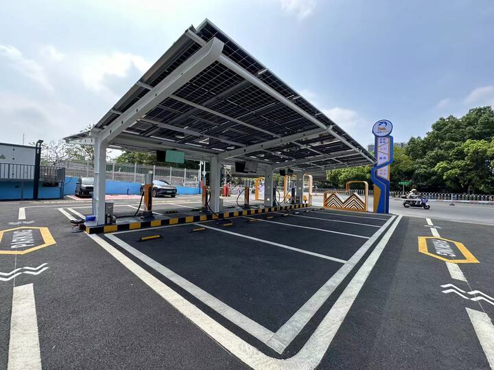 智能充电区设置了8个充电桩,可以同时为11辆新能源汽车充电。南京公交集团投资发展公司副总经理张灼焕介绍,站内建有1套装机功率为35千瓦的光伏雨棚,同步配置10千瓦时储能柜储存光伏电能,全年可提供约3.5万千瓦时绿电。“白天光伏顶棚发出的电会优先供给车辆充电,余下的电能存入储能系统,夜间低谷电价时进行储能,在充电高峰期向充电桩送电协助支撑电力负荷。”