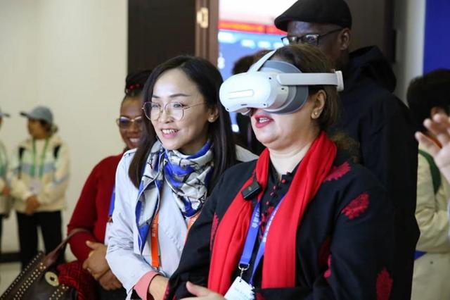 媒体代表使用VR设备感受光伏项目现场。