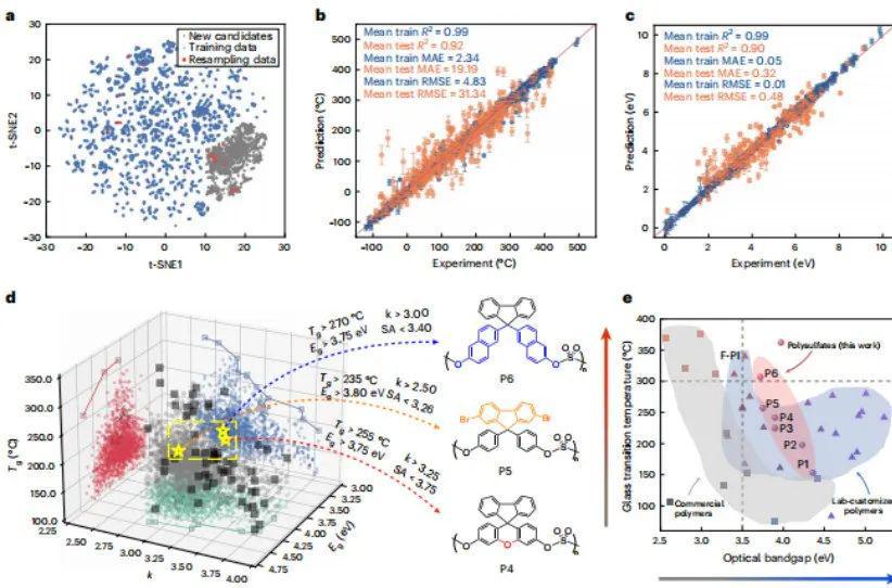 他们设计了该工作流程(如下图所示),采用机器学习辅助的方法,显著缩减了实验验证的时间,并快速地筛选出了目前最具潜力的聚硫酸酯材料。